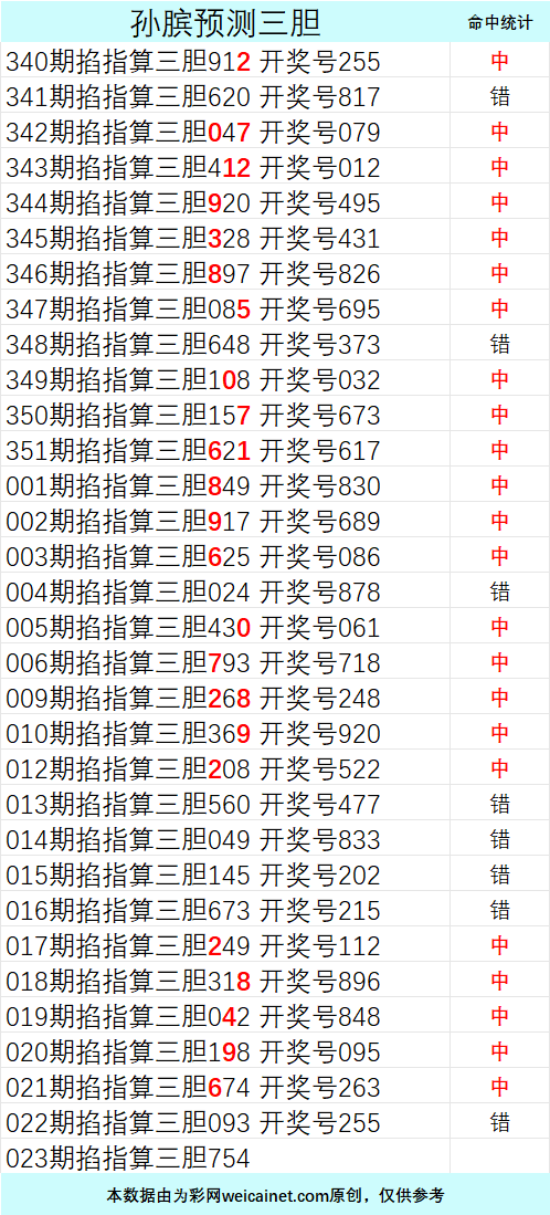 • 排列三26025期孙膑预测三胆
