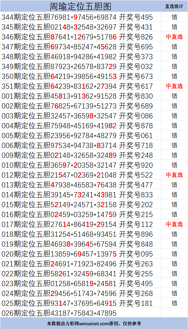 • 排列三26025期胆码 周瑜定位五胆图