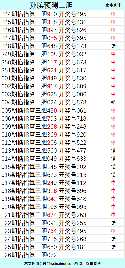 • 排列三26026期孙膑预测三胆