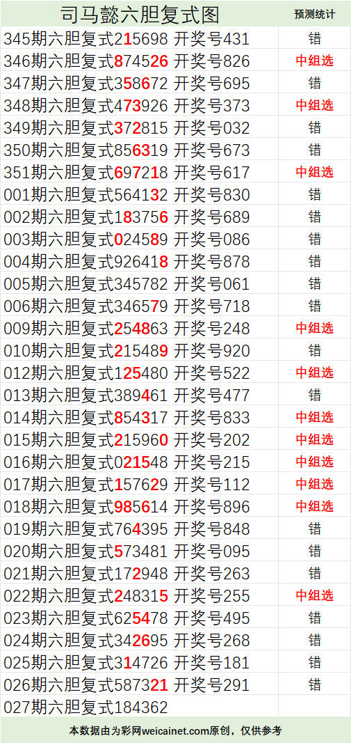 • 排列三26027期司马懿六胆复式预测图