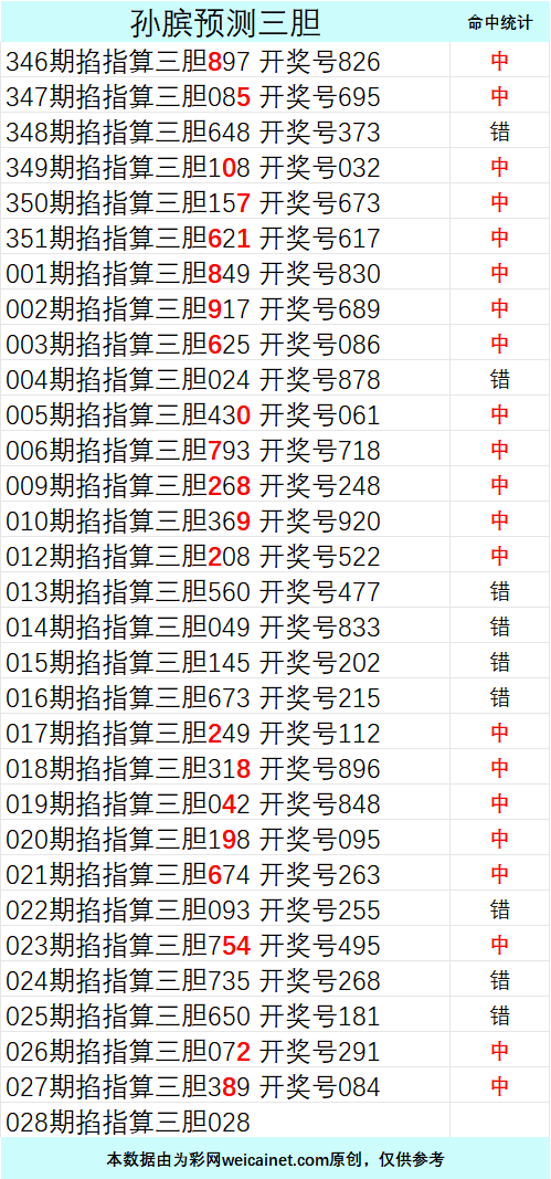 • 排列三26027期孙膑预测三胆