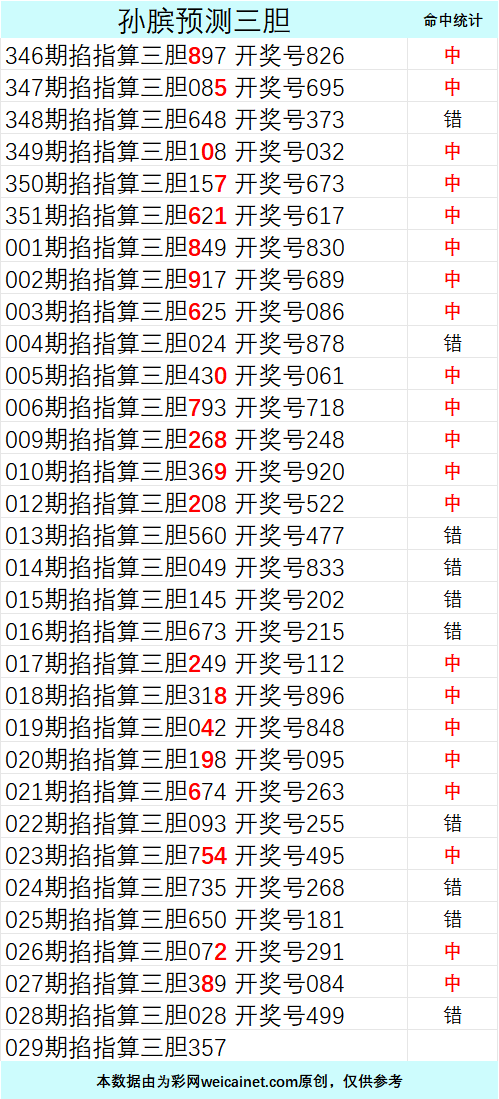 • 排列三26029期孙膑预测三胆
