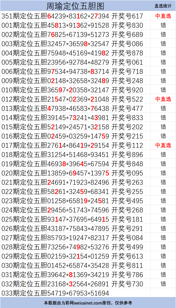 • 排列三26033期胆码 周瑜定位五胆图