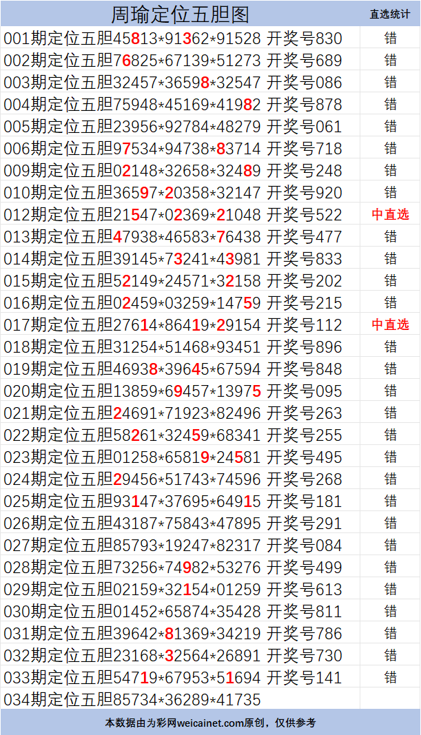 • 排列三26034期胆码 周瑜定位五胆图