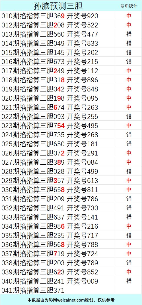 • 排列三26065期孙膑预测三胆