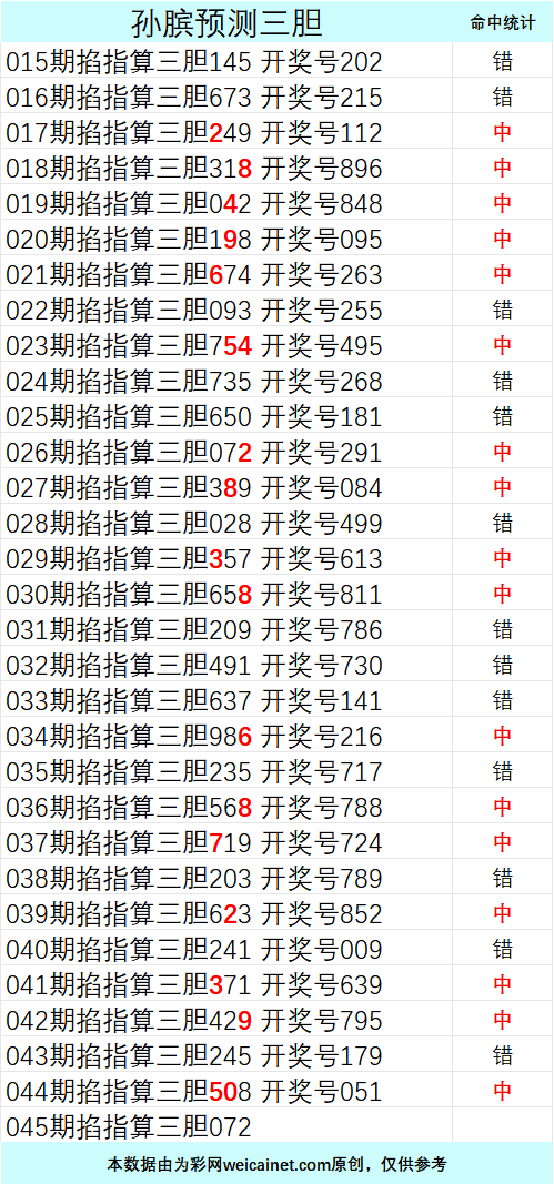 • 排列三26045期孙膑预测三胆