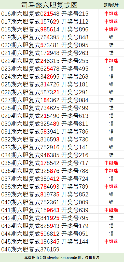 • 排列三26046期司马懿六胆复式预测图
