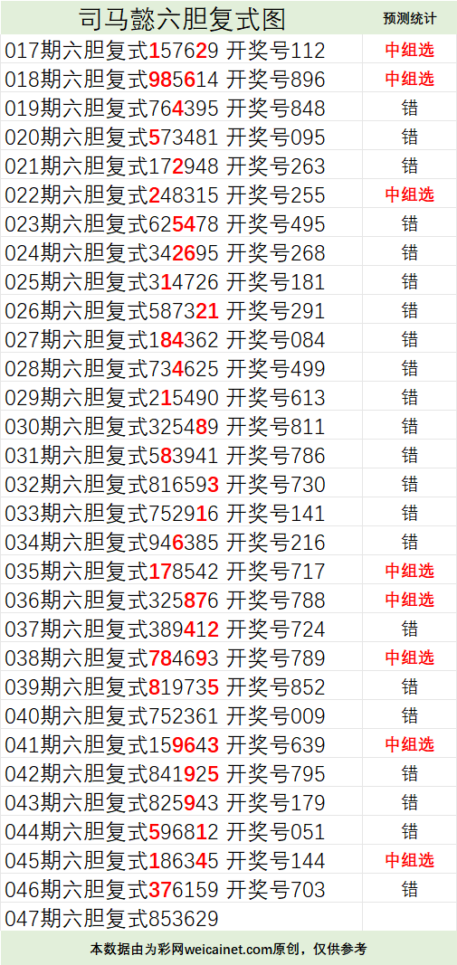 • 排列三26047期司马懿六胆复式预测图