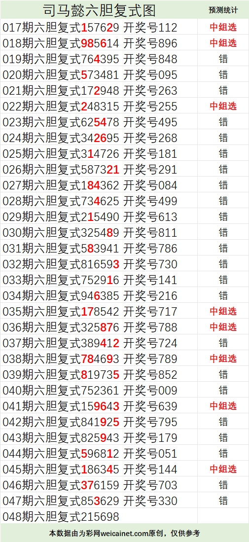 • 排列三26048期司马懿六胆复式预测图