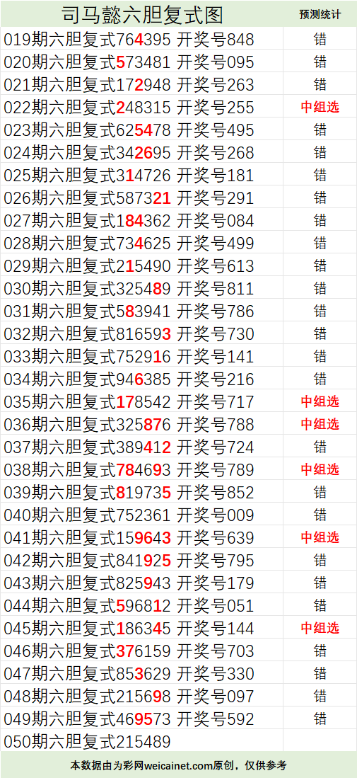 • 排列三26061期司马懿六胆复式预测图