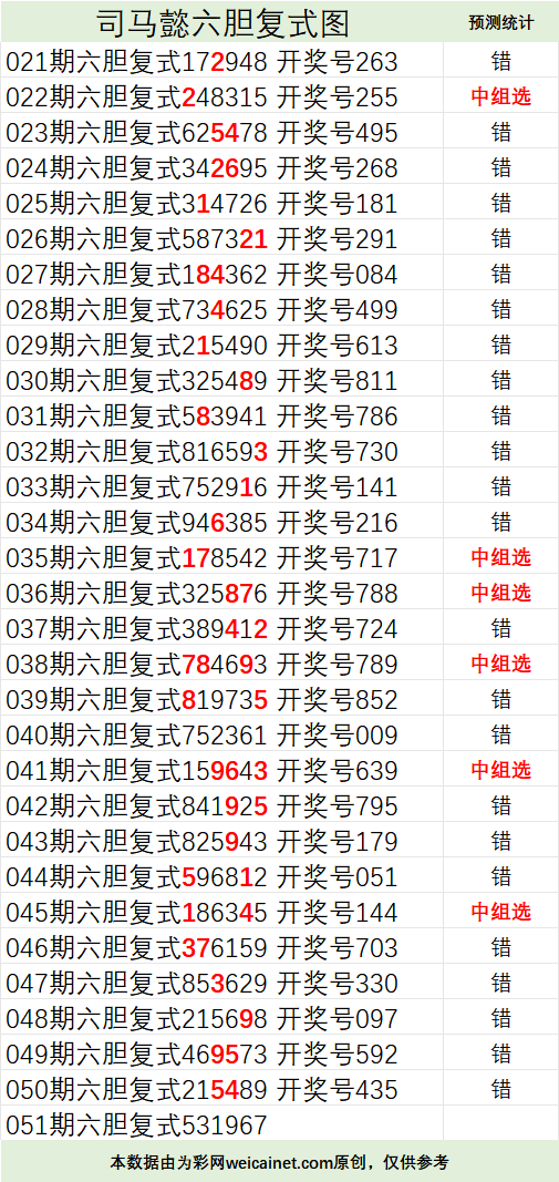 • 排列三26061期司马懿六胆复式预测图