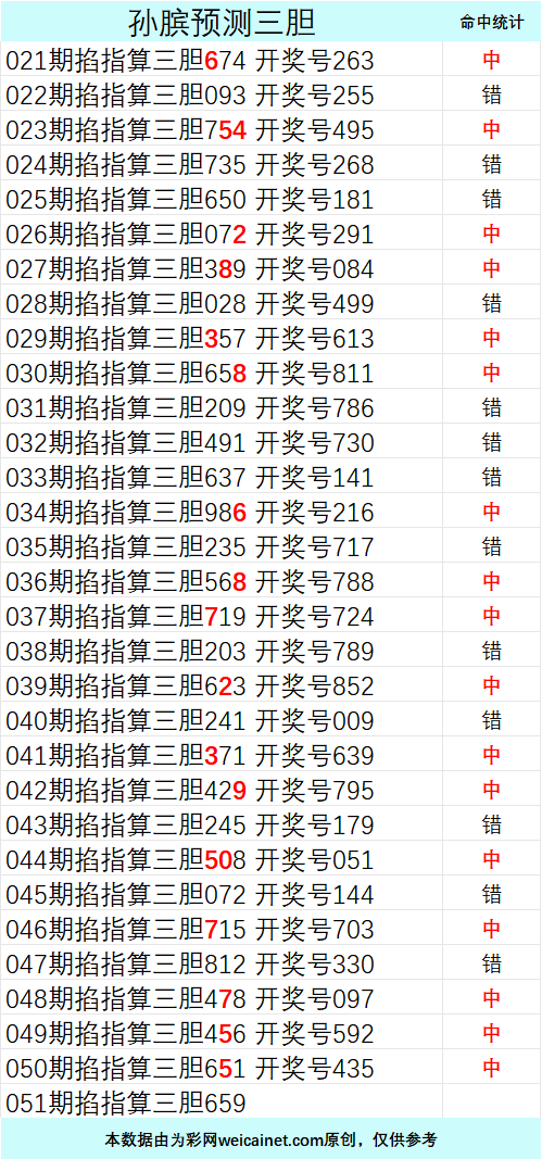 • 排列三26051期孙膑预测三胆