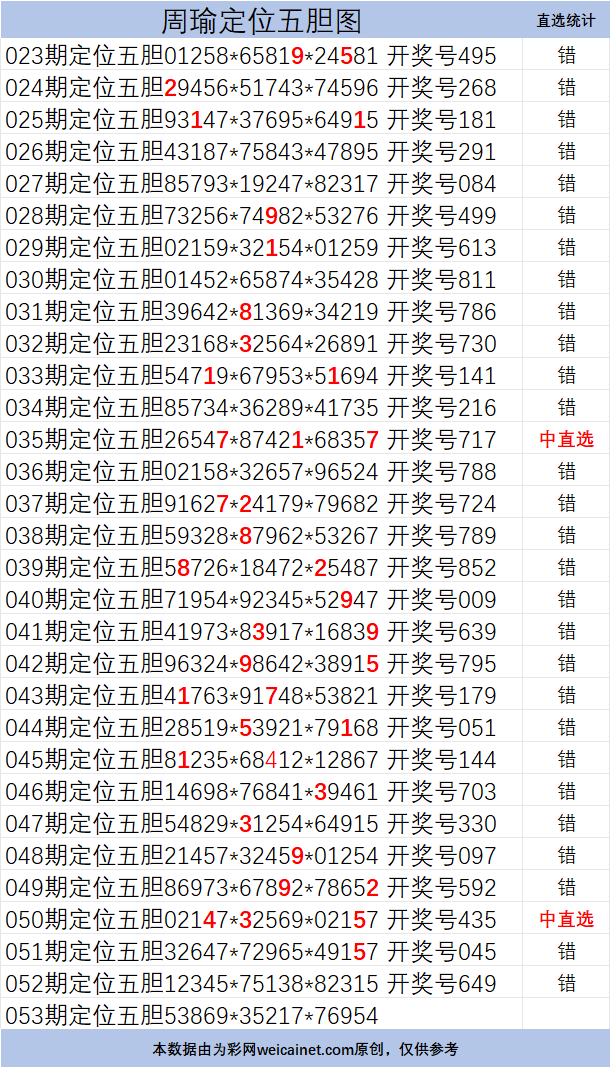 • 排列三26053期胆码 周瑜定位五胆图