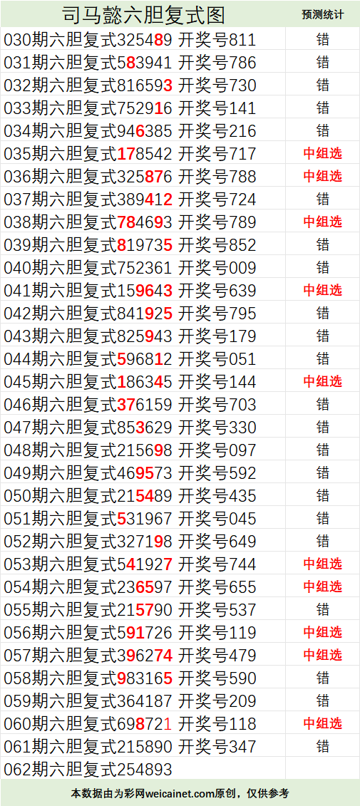 • 排列三26062期司马懿六胆复式预测图
