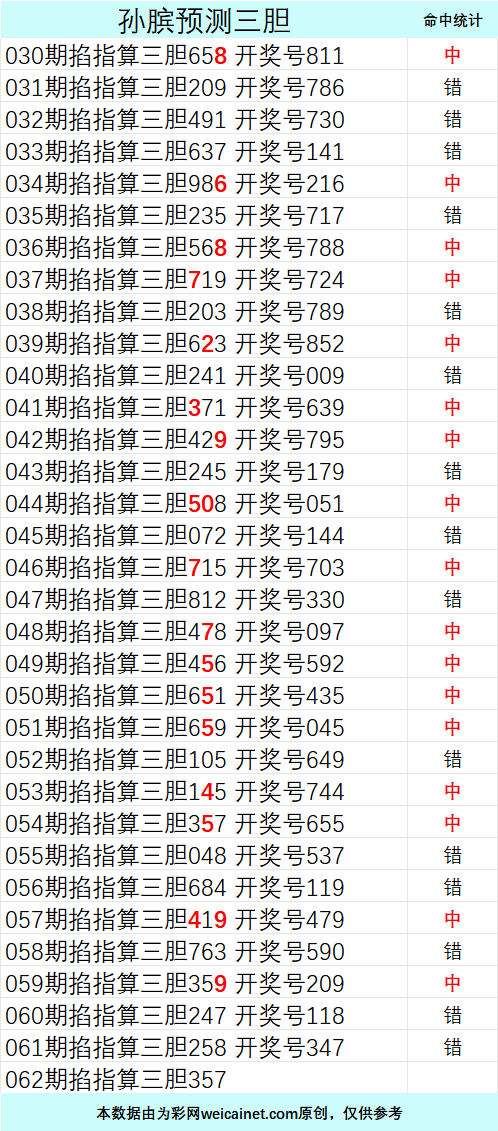 • 排列三26062期孙膑预测三胆