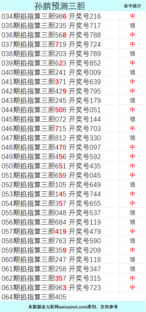• 排列三26064期孙膑预测三胆