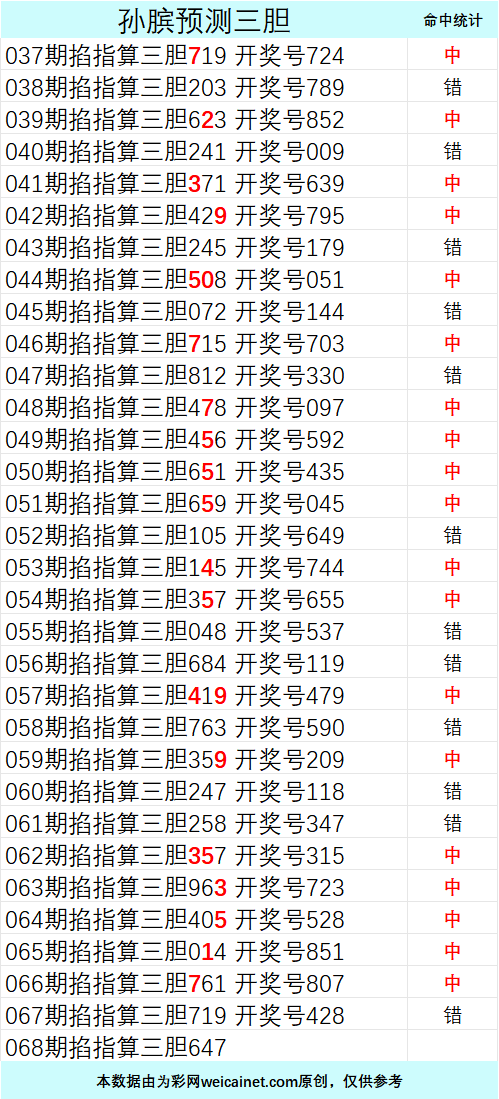 • 排列三26068期孙膑预测三胆