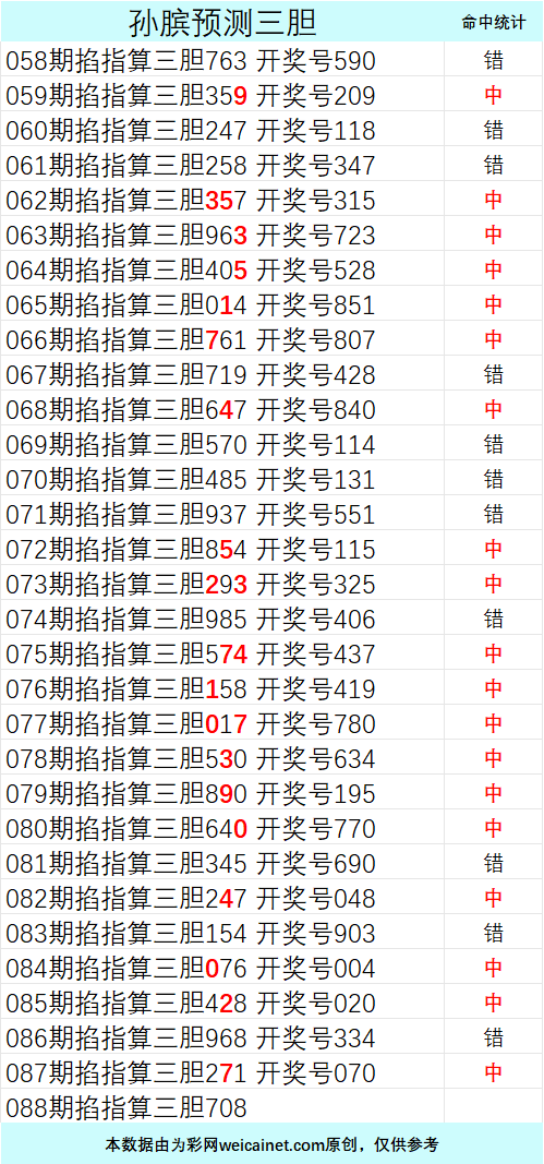 • 排列三26088期孙膑预测三胆