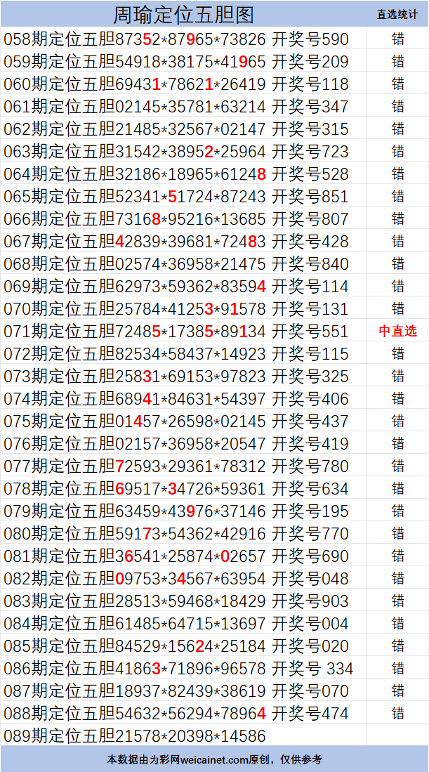 • 排列三26089期胆码 周瑜定位五胆图