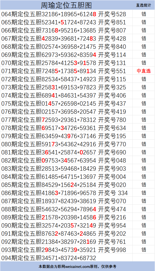 • 排列三26094期胆码 周瑜定位五胆图