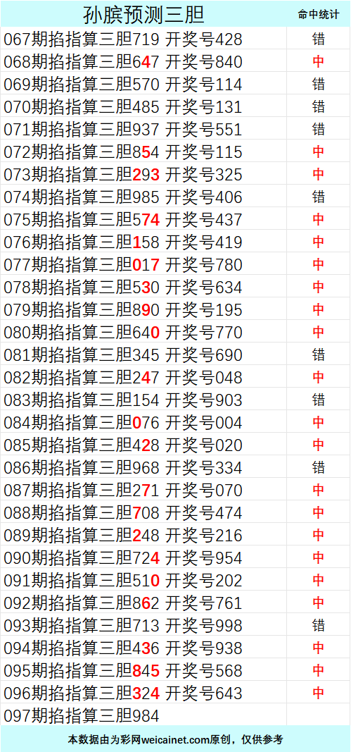 • 排列三26094期孙膑预测三胆