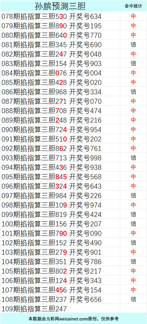 • 排列三26106期孙膑预测三胆